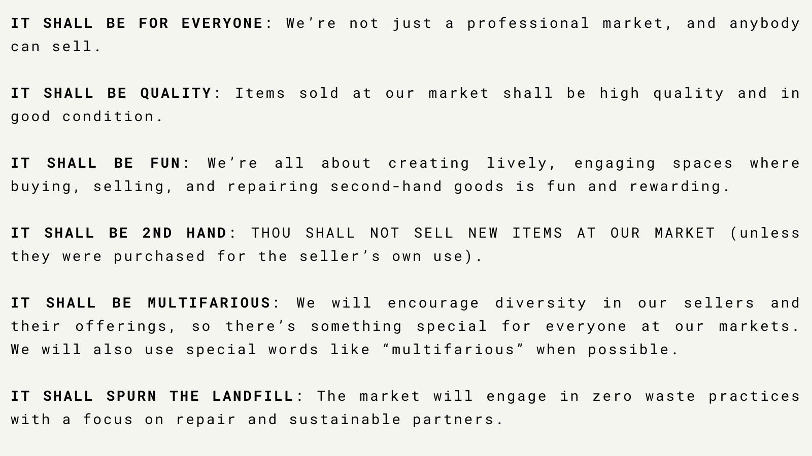 You do you! The purpose of the event is to create a space to buy and sell nice 2nd hand things. If you prefer to give your nice things away, we can’t anoint you a saint, but we can sell you a stand at our market!